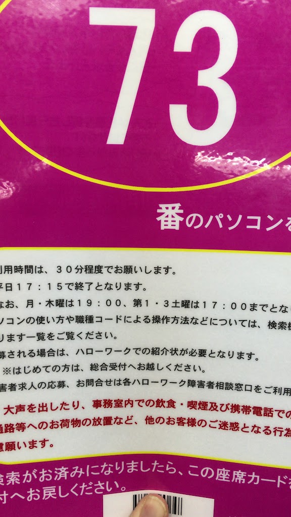 というわけで、ハロワに入り、入口の総合カウンターで、